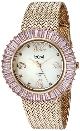 Burgi Women's BUR076PK Mother-Of-Pearl Diamond and Baguette Bracelet Watch