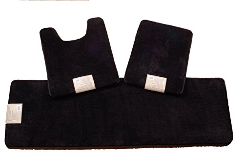3 Piece Ultra Plush Solid Color Non-slip memory foam Bathmat #64 Black