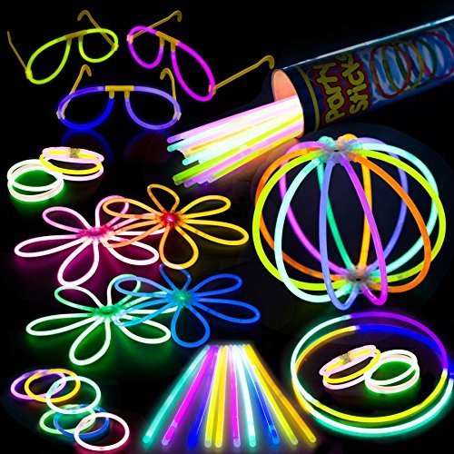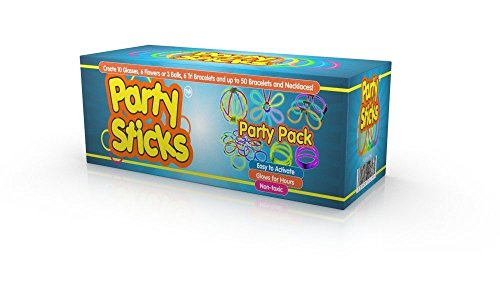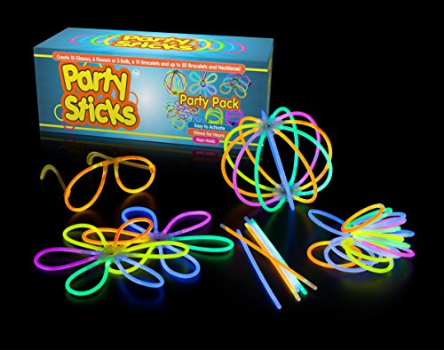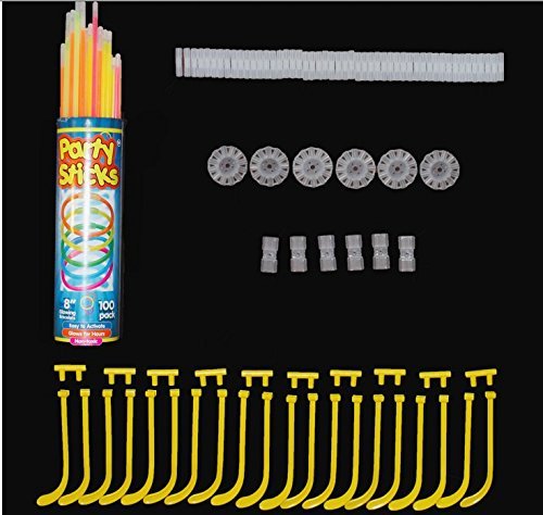 -. Feature : INCLUDES: 100 8" premium glow sticks with reusable connectors to make 10 glasses, 6 flowers or 3 balls, 6 tri bracelets and up to 50 bracelets and necklaces. The ultimate party pack for fun in the dark! / LONGEST LASTING: Glow sticks glow brightly for 8 - 12 hours. Once they start glowing, PartySticks brand glow sticks will last all night / ASSORTED COLORS: Pink, green, blue, yellow and orange. A spectacular assortment of colors for glow in the dark fun / FUN: Great for Halloween, parties, boy and girl party favors, weddings, camping trips, special events and so much more! / CHILD SAFE: Non-Toxic, waterproof and CPSIA Compliant. Premium Quality. Ages 3+