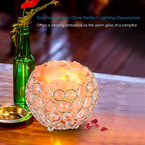 Dimmable Lighting and Uquine: the chunks of salt crystal vary in size and can be easily arranged to the metal crystal bowl according to your own style, which would show a unique you to others with that beautiful dimmable orange light