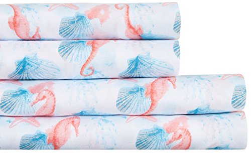 Hedaya Home Fashions Pink and Blue Seahorse Microfiber Sheet and Pillowcase Set, Queen, Pink Seahorse
