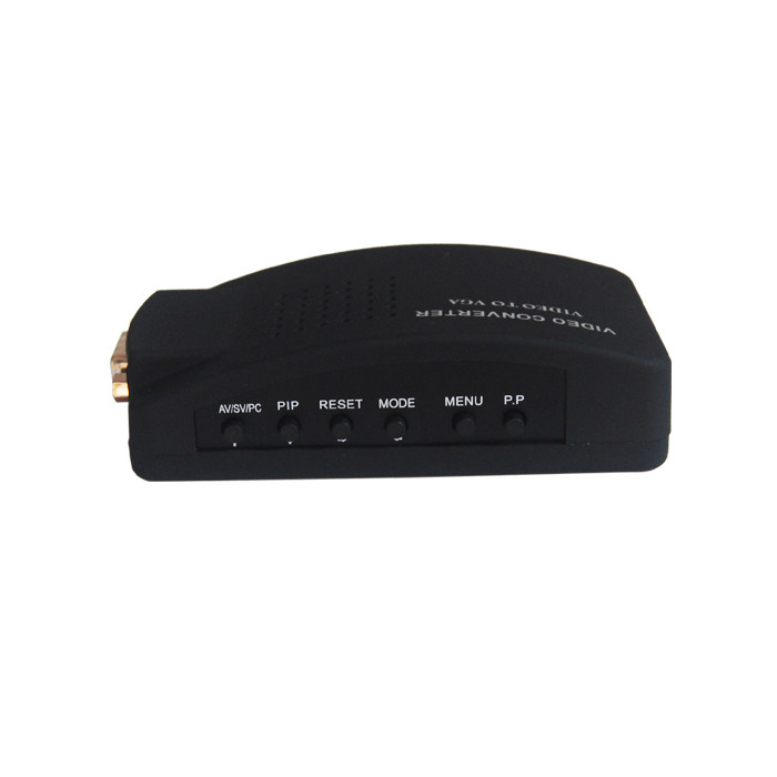 Features:It can change the signal of "S" terminator of video into VGA signals line-by-line. let your monitor change into flicker free display. This flicker free display is good display. It also can be connected to VCD / DVD / webcam / set-top box etc. It will make your monitor be like digital TV.Advanced scan frequency improves the technique, refresh rate can be easily switched between 60-75Hz, while the pictures don't flickResolving capability can be easily switched among (800x600 / 1024x768 / 1280x1024 / 1440x900 / 1680x1050 / 1920x1080 / 1920x1200), CRT monitor and LCD monitor are compatibleThe function of extra strong 3D image denoising makes the pictures clear and steadyDistinguishing PIP function, and the size and position of the windows can be adjustedThe AV / S terminator input interface can be connected to VCD / PDP / PS2 / cBroadband PC / TV selector switch (200MHz)Specifications:Host Converter Size: 10 x 6 x 2.5cm/3.94 x 2.36 x 0.98inch(L x W x H)Plug: USInput: AC 100-240V 50/60 HzOutput: 5V 1AAdapter Cable Length: 90cm/35.4 inchColor: Black