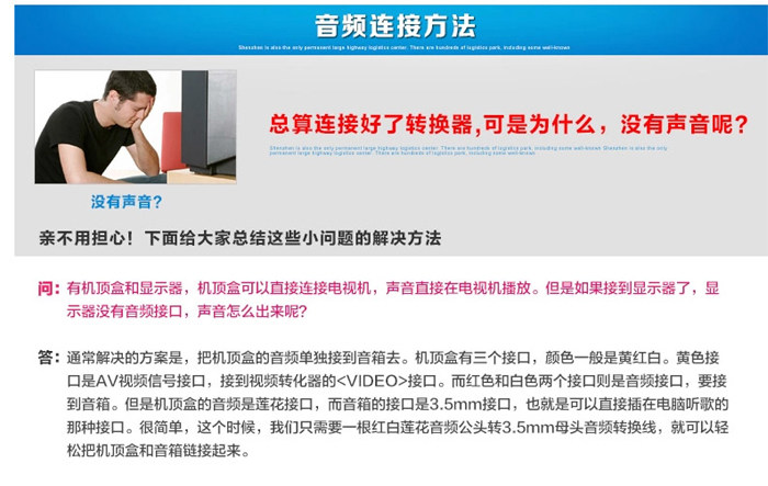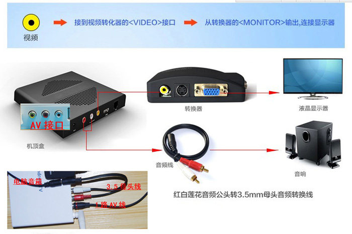 ±¾²úÆ·½Ó»ú¶¥ºÐֻת»»ÊÓÆµÐźŵ½ÏÔʾÆ÷ÉÏ£¬µçÊÓÉùÒôÖ»Ðè½Ó»ú¶¥ºÐºóÃæµÄ£¨ºì°×½Ó¿Ú£©×óÓÒÉùµÀµ½ÒôƵÉ豸ÖоͿÉÒÔʹÓÃÁË¡£±¾²úÆ·Ìå»ýС»ÖÊÇåÎú£¬·Ç³£·½±ãʹÓã¡
