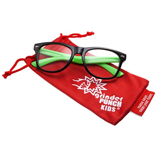 -. Binding : Toy -. Brand : grinderPUNCH -. Feature : Non-RX (non-prescription) for fashion use. Great for constumes! / UV400 Protection (UVA and UVB) / Size: 5in Wide x 1.6in Lens Height x 5in Arms / These will fit on most kids ages 3-10. Since the size of children vary, please use the measurements for sizing. / Includes grinderPUNCH Kids Microfiber Pouch -. Label : grinderPUNCH -. Manufacturer : grinderPUNCH -. ProductGroup : Toy -. ProductTypeName : TOYS_AND_GAMES -. Publisher : grinderPUNCH -. Size : Children Ages 3-10 -. Studio : grinderPUNCH -. Title : Kids Nerd Fake Glasses Clear Lens Colored Arms Geek Costume Children's (Age 3-10)