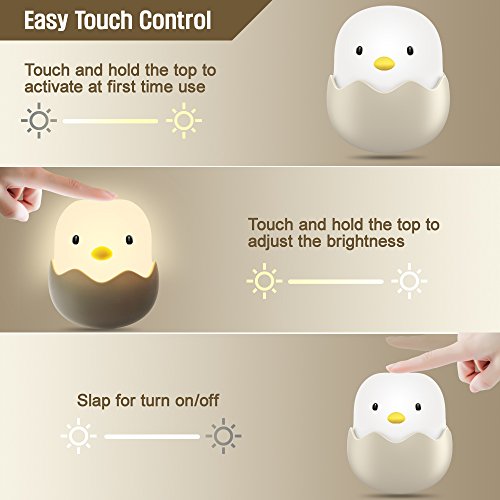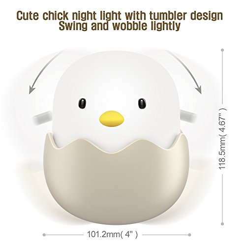 GREAT GIFT CHOICE: The cute egg shell chick night light is perfect as kids night lamp, baby nursery lamp, decoration lamp, dim bedside lamp, mood lamp, camping light. Also it can be used as a fun and special gift to the children, families or friends.