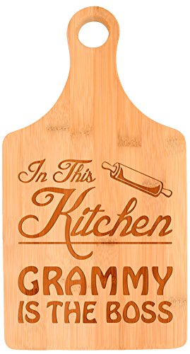 Mother's Day Gift for Grandma In This Kitchen Grammy is the Boss Paddle Shaped Bamboo Cutting Board