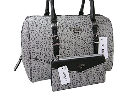 -. Title : New Guess G Logo Purse Satchel Hand Bag & Wallet 2 Piece Set Black Gray Silver
