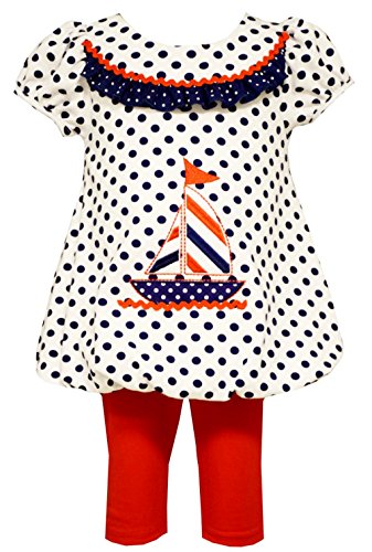 -. Binding : Apparel -. Brand : Bonnie Jean -. Department : baby-girls -. Feature : Absolutely adorable! Navy and white polka dot girls tunic features sailboat applique and matching pullon red stretch leggings. Super sweet whimsical vintage style. Ruffle at neckline. In cotton and spandex. Machine wash. Imported / Bonnie Jean Baby Girls Dot Sailboat Tunic Legging Set -. Label : Bonnie Jean -. Manufacturer : Bonnie Jean -. MPN : R07060 -. PartNumber : R07060 -. ProductGroup : Apparel -. ProductTypeName : PANTS -. Publisher : Bonnie Jean -. Studio : Bonnie Jean -. Title : Bonnie Jean Baby Girls Dot Sailboat Tunic Legging Set