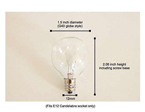 Brillante Replacement Bulbs for G40 Globe String Lights - E12 Socket, Candelabra Base (25 Pack of Clear 5 Watt Incandescent Bulbs)