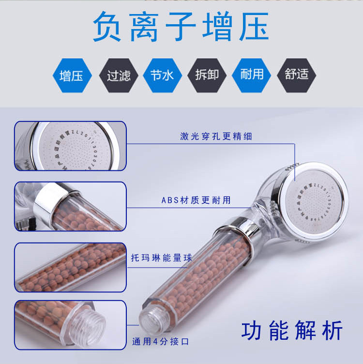 Three-speed booster nozzle has a third gear adjustable file button, click on a file of water, and then press the second tranche of water better, and then press the third gear booster effect is more obvious, more comfortable water.