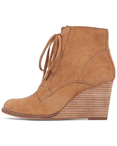 Product DescriptionLace-up front. Plain round toe on an ankle bootie silhouette. Smooth man-made linings. Stacked wedge heel. Man-made sole. Imported.0