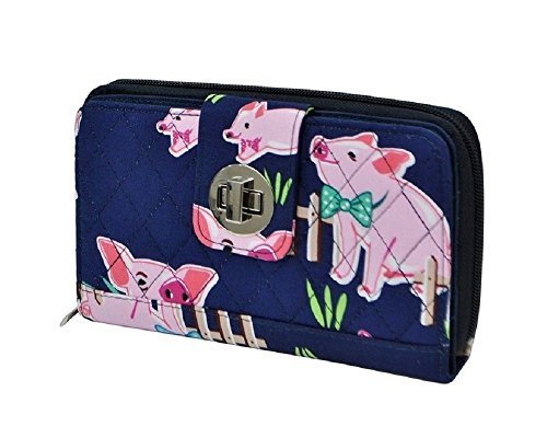 -. Title : NGil Pink Bow Tie Pig Ag Farm Quilted Twist Latch Organizer Wallet Pink Blue