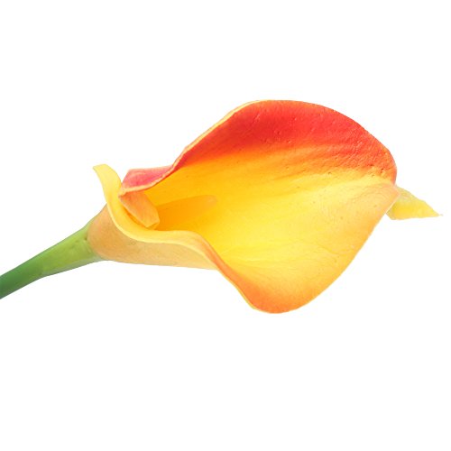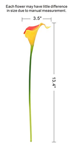 - PERFECT SIZE: Total height of this artificial calla lily is 13.4inch/34cm high approx, head height is about 3.3inch/8cm, head across is about 3.5inch/8.9cm. Please allow little difference in size due to manual measurement. PACKAGE: 24 packs individual Orange Artificial PU Calla Lily.