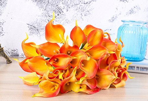 Febou 24pcs Artificial Calla Lily Bridal Wedding Bouquet PU Real Touch Artificial Flowers for Wedding, Home, Party Decoration (Orange)