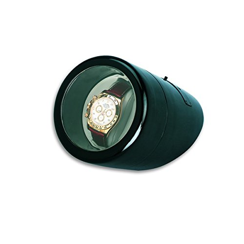 -. Title : Handsome Oak Wood Single Watch Winder in Black High Gloss Round Collectors Watch Box