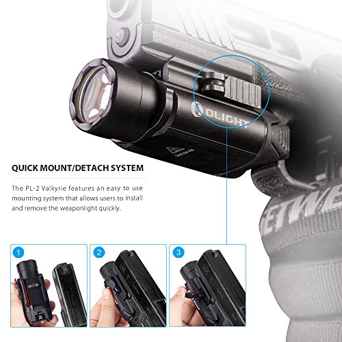 Olight Bundle pl-2,pl2, pl ii valkyrie 1200 Lumen rail mounted compact pistol light with 2 x cr123a batteries handgun weapon light flashlight for glock,s&w, sig sauer, beretta with patch