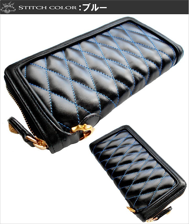 【Deep Zone】ワイルドでセクシーを上品にまとめる男のレザーブランド。自分買いからプレゼントにも人気でオススメです。肌触りのよい上質の牛革を細部に至るまで丹念かつ丁寧に縫製及び仕上げが施された拘りの逸品!ボリュームのあるダイアモンドデザインのキルティング加工!インナーには独特の艶と輝きを放つ高級皮革のイタリアンレザーを使用しています。ラウンドファスナーのスライダー部分のコンチョと背面に有るハンドルはブラス製です。カード入れ:12 札入れ:4 コイン入れ:1プレゼント ギフト財布 メンズ 長財布/財布 さいふ サイフ【ステッチカラー】ホワイト・ブルー・レッド【素材】 本体:牛革 コンチョ・ハンドル:ブラス製