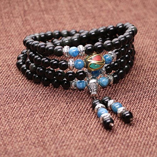 -. Title : AmorWing 108 Beads Multilayer Tiger Eye and Obsidian Malas Prayer Beads Bracelet 6mm