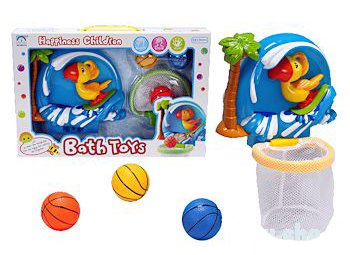 Bathtime basketball fun! This bathtime basketball set is fun and colorful! The backboard is cute. The suction cups securely hold the backboard to the tub wall. Just had fun shooting the basketballs through the rim and into the net! Includes 3 basketballs in yellow, orange, and blue. Backboard measures 9" x 8". Rim measures 5" x 4" with net 6" deep. Basketballs measures 2" each. Kids will enjoy playing with this bathtime basketball set!