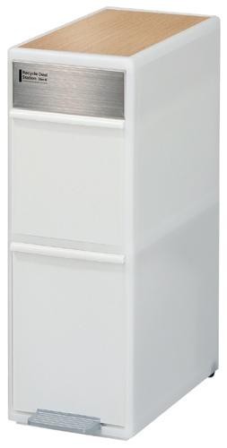 | 資源ごみをひとまとめにストックできる分別容器2段タイプ☆天板トップにはインテリア性を考慮した耐熱性メラミン木天板を付属。 |