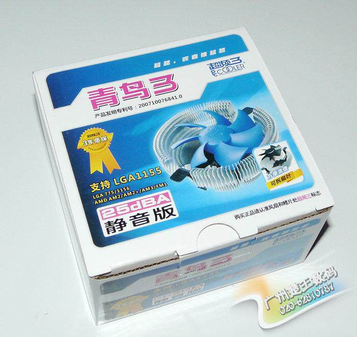 超频3青鸟III处理器散热器,采用了开放式散热铝片散热方案,这样的模具切割工艺从成本上就不菲,当然可以获得相当不错的散热效果。同时铝片散热可以获得相当不错的热传递速率,搭配6片扇叶的8公分静音风扇得到相当不错的散热效果。