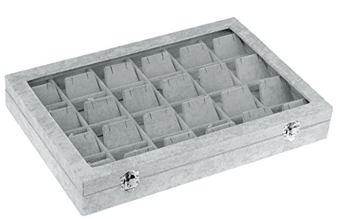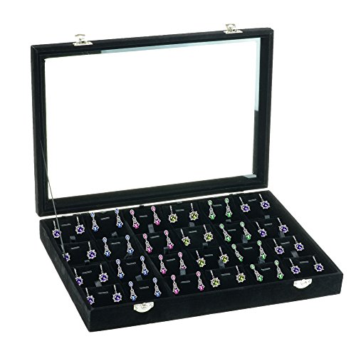 -. Binding : Kitchen -. Brand : Geff House -. Feature : Beautiful Soft Velvet Exterior with Removable Inserts and Compartment Dividers. / Clear Lid with Two Latches for Visibility and Security. / Stackable - for Easy Storage and Accessibility / Dimensions: 13.9" X 9.5" X 2" Inches -. IsAutographed : 0 -. Label : Geff House -. Manufacturer : Geff House -. ProductGroup : Home -. ProductTypeName : HOME -. Publisher : Geff House -. Studio : Geff House -. Title : Geff House 24 Earring Jewelry Display Showcase Tray Clear Top