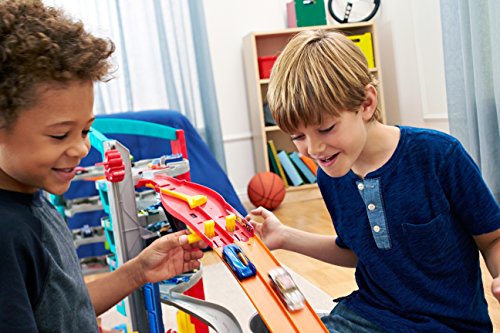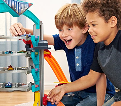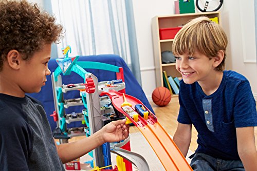 - Feature : Mega action and big adventures can be found in the biggest Hot Wheels garage EVER / Features multiple action zones including a chomping shark, tune-up shop and gas station / Parking spots for 36 cars and play space for more / Offers tons of imaginative play for kids / Connects to other Hot Wheels track sets (sold separately)