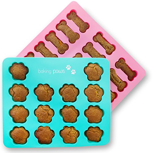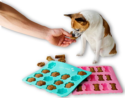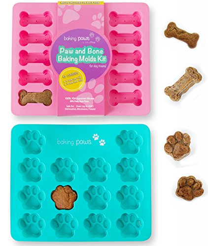 Paw Mold & Dog Bone Mold - x2 Pack Paw Print Cake Mold and Dog Cake Bone Pan - Silicone Mold Dog Treat Tray, Ice cube, Cookie Cutters, Candy for Pets and Kids by BakingMissy