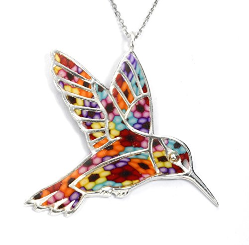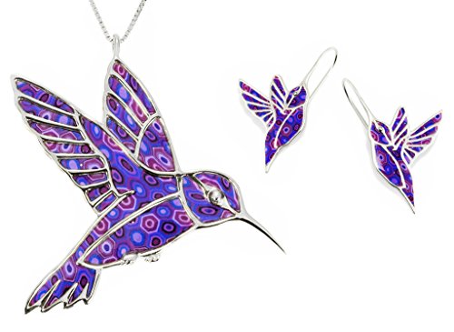 -. Feature : Hummingbird necklace pendant and dangle earrings jewellery set, beautifully handmade from polymer clay, set into 925 sterling silver / Hummingbird pendant measures 1.4x1.9 inches, 3.6x4.8cm and arrives on a 925 sterling silver, high quality Italian made chain measuring 16.5", 42cm. Hummingbird earrings measure 1.3x0.9 inches, 3.2x2.2cm, and sturdily dangle from elegant 925 sterling silver, high quality fish hooks. (Please note: chain type may vary then that pictured) / A wonderful gift idea for that special woman in your life, whether it be a Christmas gift, anniversary, birthday or just because, the colourful handcrafted jewellery is a unique gift she'll truly love / All our handmade polymer clay jewellery arrives in a beautifully colourful jewellery gift box / Millefiori, Italian for '1000 Flowers', is the extraordinary technique used to handcraft the enduring and colourful millefiori jewellery collection. An ancient technique adapted to manually mould polymer clay into various designs, a process that takes about a week, each piece of jewellery is then finished with a coating of transparent enamel to achieve the glimmering, lasting results