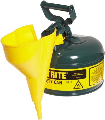 Justrite 7120410 2 Gallon, Galvanized Steel Type I Green Safety Can With Funnel