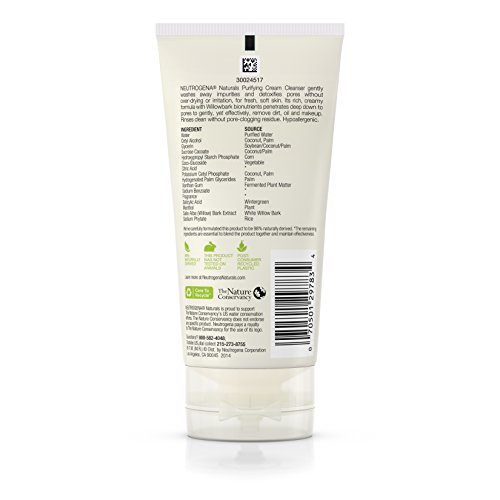 ReleaseDate : 2014-04-23 Studio : Johnson Johnson SLC Publisher : Johnson Johnson SLC Binding : Health and Beauty Product Description Neutrogena Naturals Purifying Cream Cleanser gently washes away impurities and detoxifies pores without over-drying or irritation, for fresh, soft skin. It's rich, creamy formula with Willowbark bionutrients penetrates deep down to pores to gently, yet effectively, remove dirt, oil and makeup. Rinses clean without pore-clogging residue. Hypoallergenic. 0