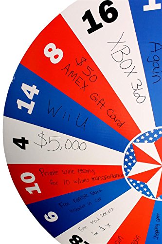 Displays2go Free-Standing Cardboard Prize Wheel with 18 Numbered Sections, Blue/Red/White