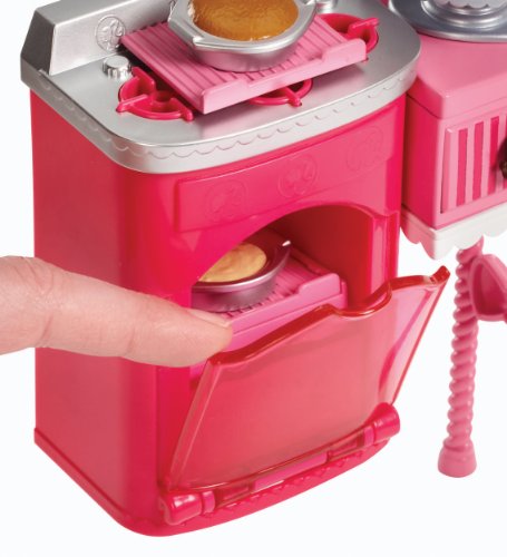 She looks stylishly sporty in polka-dot "jeans", a striped tee (accented with a cute bow) and pink heeled kicks