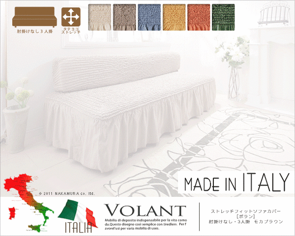 本商品はお取り寄せ商品のため、稀にご注文入れ違い等により欠品・遅延となる場合がございます。誠に恐れ入りますが、何卒ご了承ください。 また、以下の場合には追加送料がかかる場合がございます。  ・大型商品の複数購入時 ・同梱区分が異なる商品の複数購入時  【出荷目安】:3 - 6営業日 ※土日・祝除く 【同梱区分】:TS 1832 【梱包サイズ】:大型商品 【代引き決済】:不可  配送伝票の依頼主は出荷元(メーカーもしくは仕入元)名となる場合がございますので、お受け取りの際はご注意ください。   【型番】61000495  イタリア製ストレッチフィットソファカバー Volant〔ボラン〕アームなし 3人掛け用 ソファーカバー ストレッチ 3人掛け イエロー   ≪アームなし・3人掛け用です≫ 商品について:どんな形にも合わせやすいストレッチ素材のイタリア製ソファカバー。かぶせたら余った部分をソファのすき間に押し込むだけ。たっぷりとしたドレープと柔らかい凹凸が特徴。簡単模様替え♪洗濯OK 適合ソファサイズ:幅130~190cm・高さ85cmまで カラー:アイボリー・モカブラウン・ブルー・オレンジ・イエロー・グリーン 材質:綿55%・ポリエステル25%・アクリル15%・レーヨン5%(61000495)  【特記事項】 画像のカラー・サイズとは異なる場合がございます。商品名のカラー・サイズをご確認下さい。  【ご注意事項】 本商品は、北海道・沖縄・離島への配送はいたしかねます。あらかじめご了承ください。