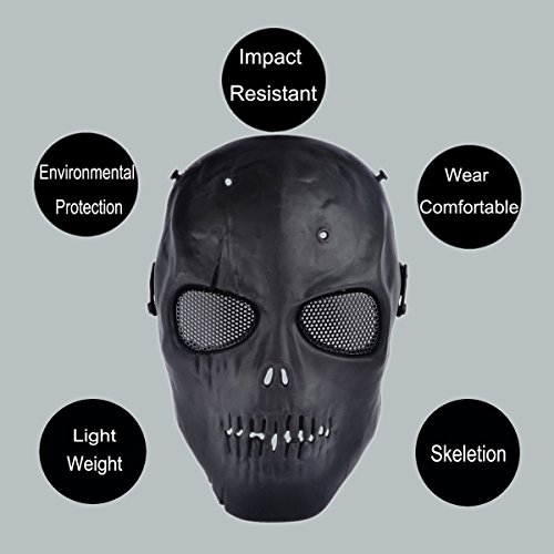 -. Binding : Misc. -. Brand : Beyonggear -. Color : Black -. EAN : 0606989846044 -. Feature : Full Face Protect Army Skull Skeleton Warrior Armor Airsoft Games Mask Skull Skeleton Full Face Games Mask / Death Skull Bone Airsoft Full Face Protect Safety Games Mask / Skull Skeleton Full Face Airsoft Games Mask / This Games Mask is lightweight and enough strong to protect your face and eyes when you play airsoft / Note: If this mask is used for Playing Paintball,need wear a goggles together with this mask -. IsAutographed : 0 -. IsMemorabilia : 0 -. Label : Beyonggear -. Manufacturer : Beyonggear -. MPN : M01 -. NumberOfItems : 1 -. PackageQuantity : 1 -. PartNumber : M01 -. ProductGroup : Sports -. ProductTypeName : SPORTING_GOODS -. Publisher : Beyonggear -. Size : General -. Studio : Beyonggear -. Title : Beyonggear Airsoft Games Mask Army Skull Skeleton Airsoft Paintball Bb Gun Game Face Mask - Gear Black -. UPC : 606989846044