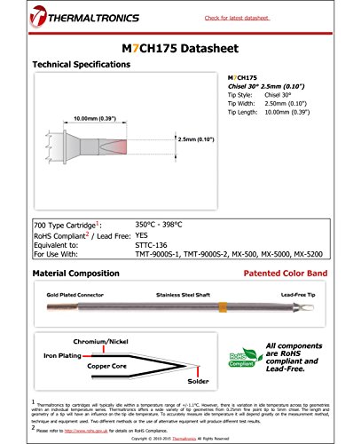 Thermaltronics M7CH175 Chisel 30deg 2.5mm (0.10") interchangeable for Metcal STTC-136