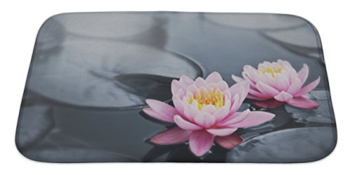 Gear New "Lotus Blossoms" Bath Rug Mat with No Slip Microfiber Memory Foam