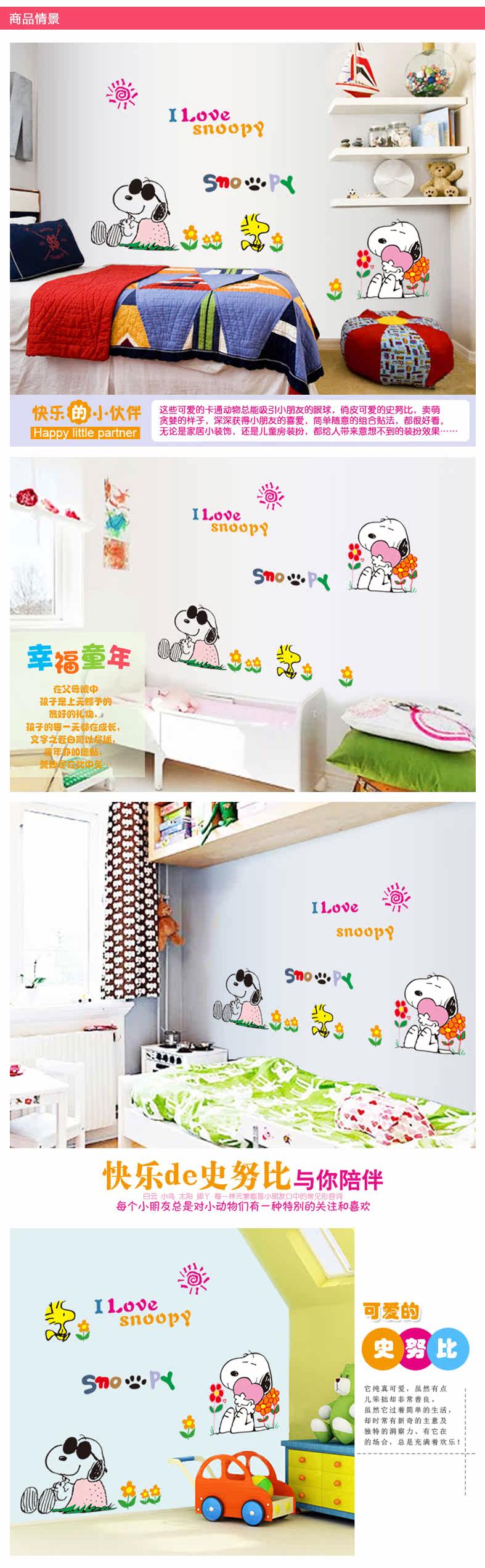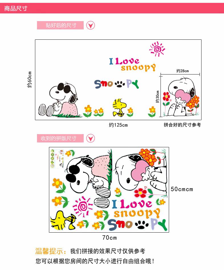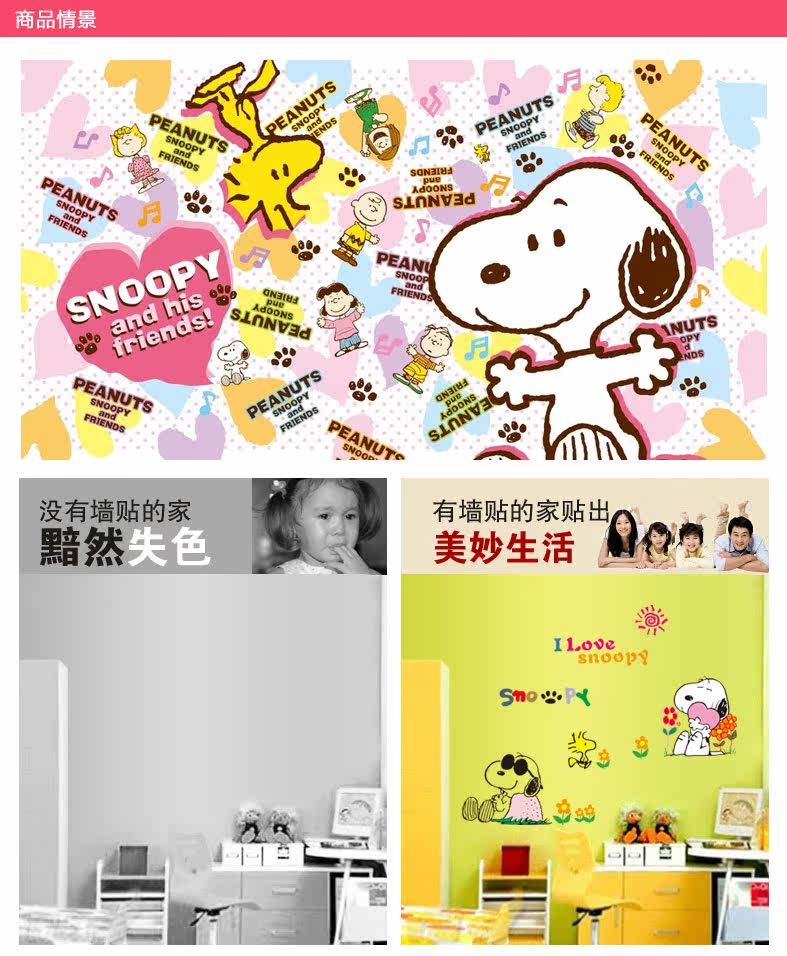 卧室客厅创意卡通个性贴纸 史努比墙贴 装饰贴画儿童房可移除