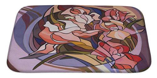 Gear New No Slip Microfiber Memory Foam Colored Illustration of Flowers in The Art Nouveau Style Modern Bath Rug Mat, 34" X 21"