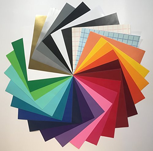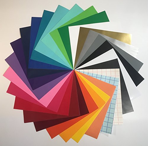27 pack 12" x 10" Permanent Adhesive Vinyl Sheets with Transfer Paper Assorted Colors of vinyl for Cricut Maker Expression Explore Silhouette Cameo craft cutters make Decals Signs Letters