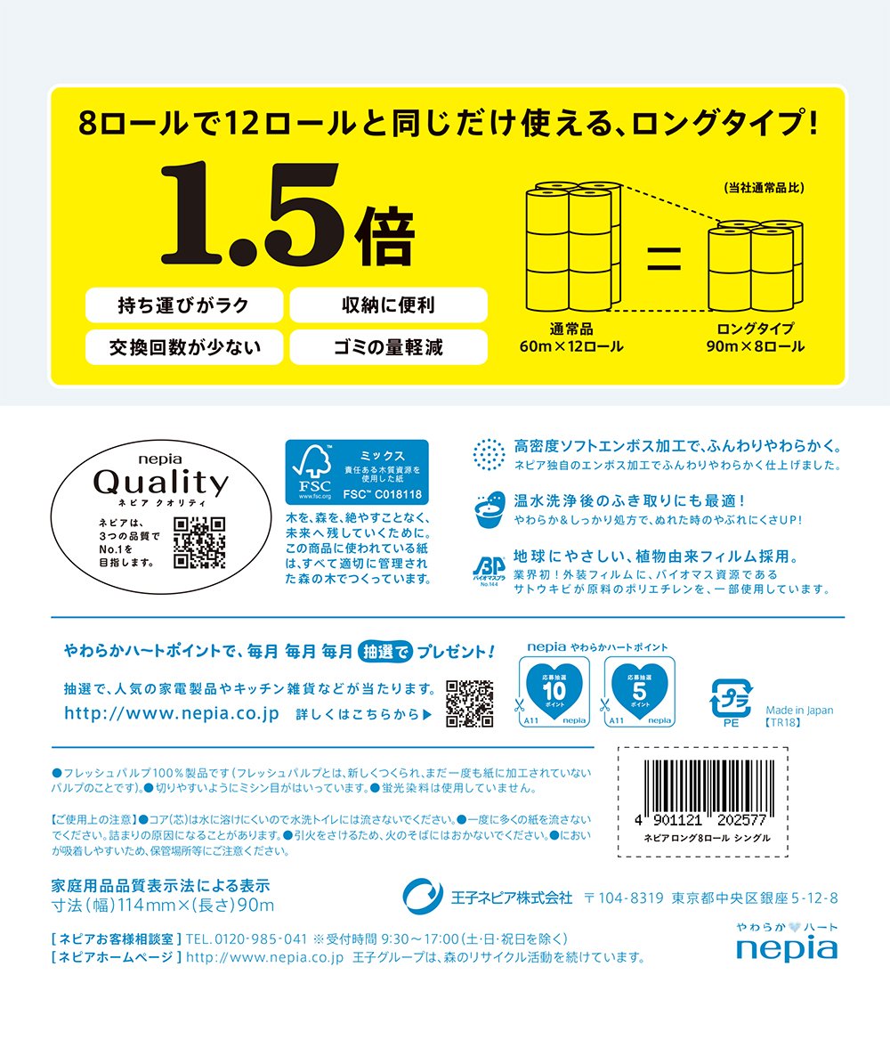 Napier Long toilet rolls 8 roll single