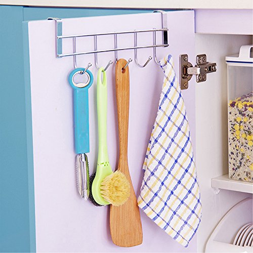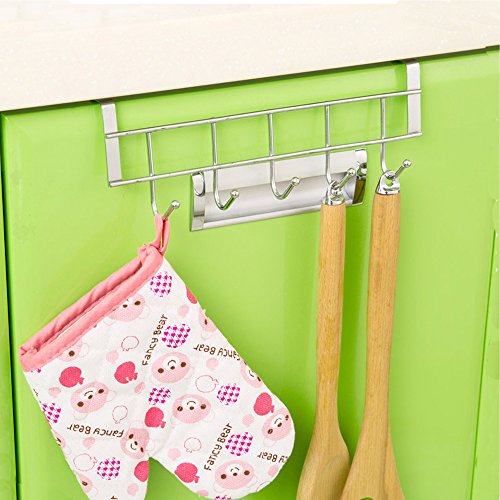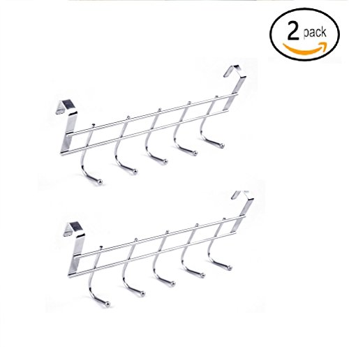 Alliebe 2 pcs Stainless Over The Door Hook Organizer Rack Hanger Holder for Home Kitchen Office Closet Cabinet