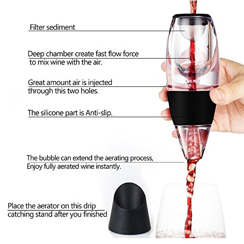 Pour your wine through this wine aerator into your glass,that makes wine taste significantly better in just seconds Mindfully crafted to minimize spilling and prevent leakage No small parts that are easily broken or lost? Easy to clean? It's packaged in a classy gift box, making it that perfect gift for any occasion. Taking care to avoid covering the air holes at the side