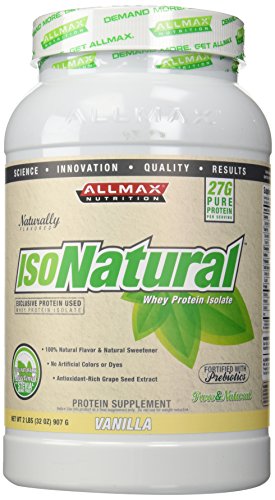 -. Binding : Health and Beauty -. Brand : ALLMAX NUTRITION -. EAN : 0665553223223 -. Feature : TRULY SUPERIOR PROTEIN: With 27g Protein in every serving, it is best for Post Workout / ANTIOXIDANT RICE GRAPE SEED EXTRACT: Fortified with Prebiotics and Antioxidant Grape Seed to improve Intestinal Microflora / NATURAL HERBAL SWEETENER: Sweetened with Extract of Stevia and Monk Fruit, NO use of Artificial color, Fat Free, Gluten Free and 99% Lactose Free / 5-STAGE QUALITY TESTING PROTOCOL by ALLMAX NUTRITION: For Best Quality every Ingredient and every Batch is LAB Tested / CERTIFIED AND SAFE: NSF (Most respected product testing organization) and cGMP (Current Good Manufacturing Practice) CERTIFIED enforced by US FDA -. IsAdultProduct : 0 -. Label : Allmax Nutrition -. Manufacturer : Allmax Nutrition -. Model : 665553223223 -. MPN : 0665553223223 -. PackageQuantity : 1 -. PartNumber : 0665553223223 -. ProductGroup : Health and Beauty -. ProductTypeName : HEALTH_PERSONAL_CARE -. Publisher : Allmax Nutrition -. Size : 2 oz -. Studio : Allmax Nutrition -. Title : Allmax Nutrition Isonatural Protein Vanilla Flavor 2 LBS -. UPC : 665553223223
