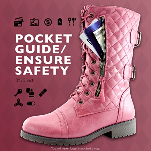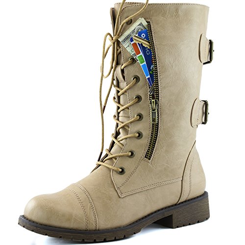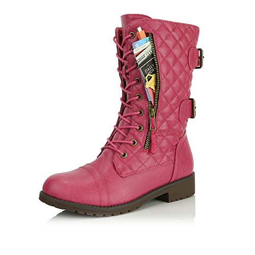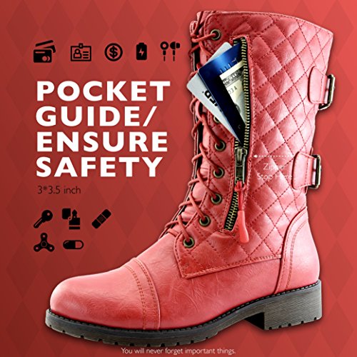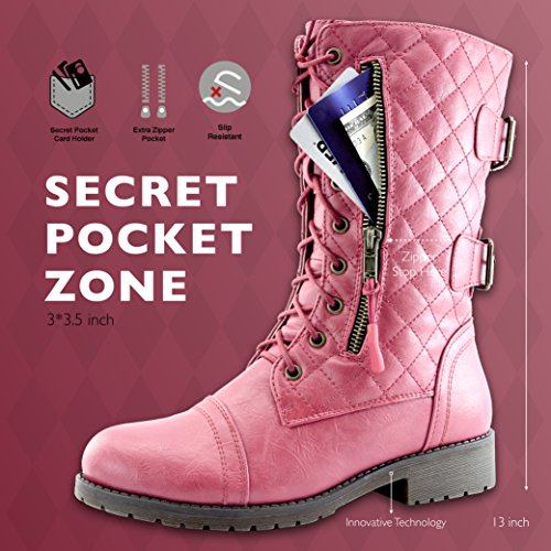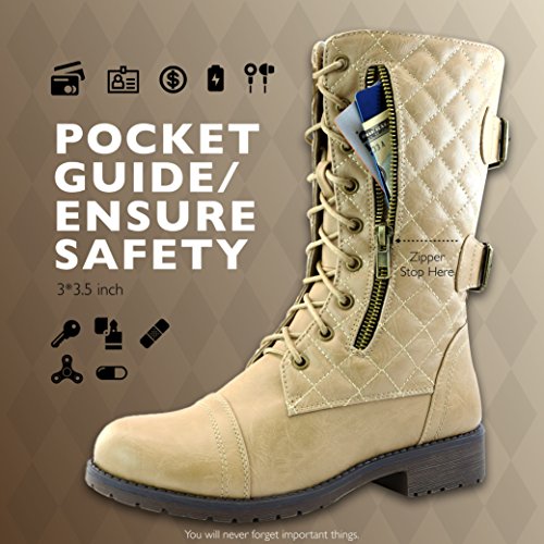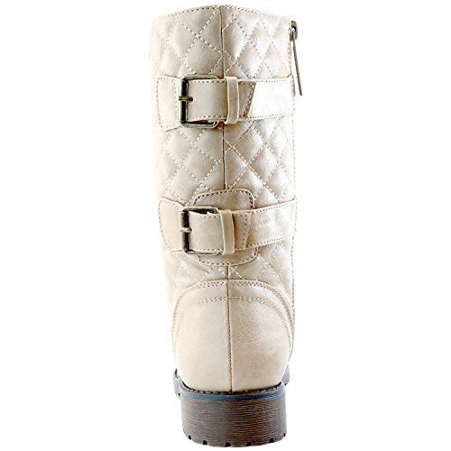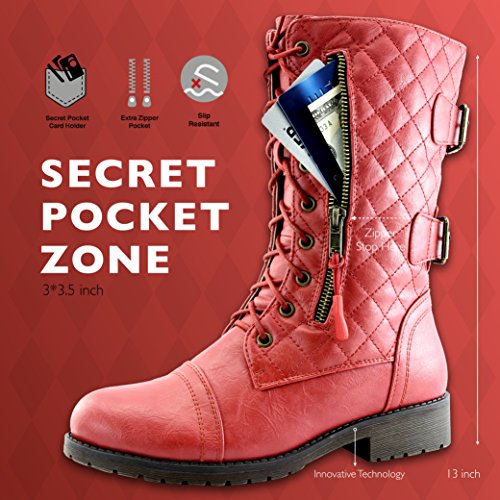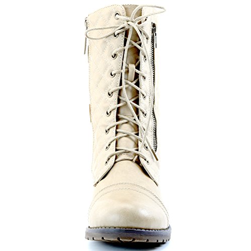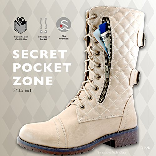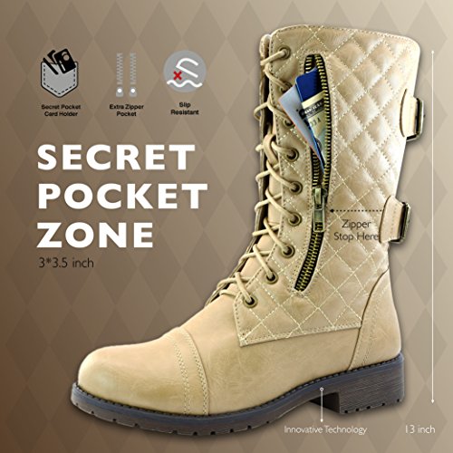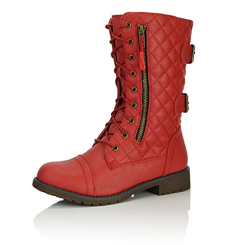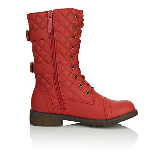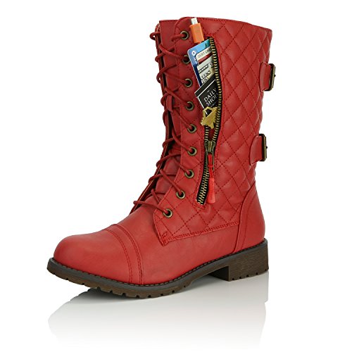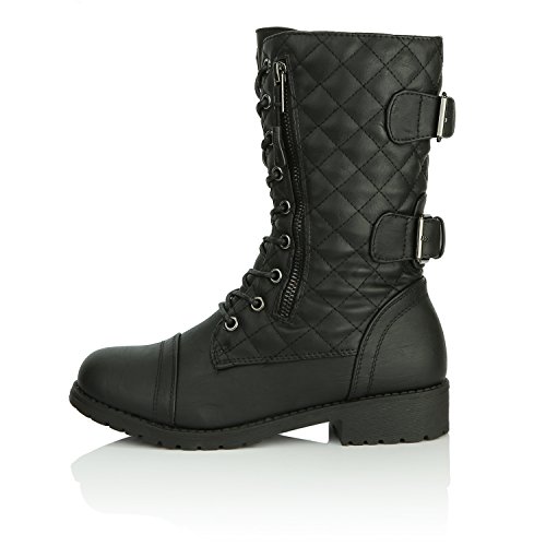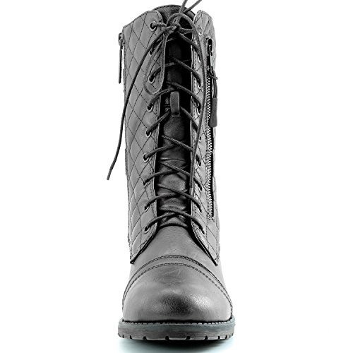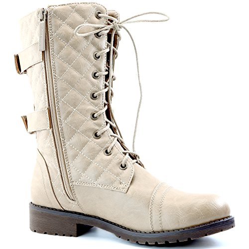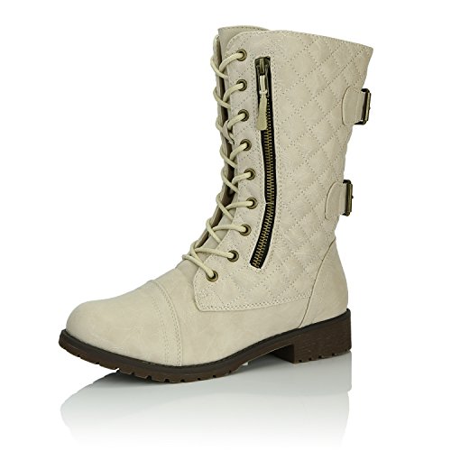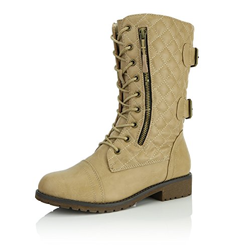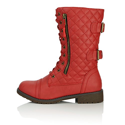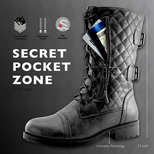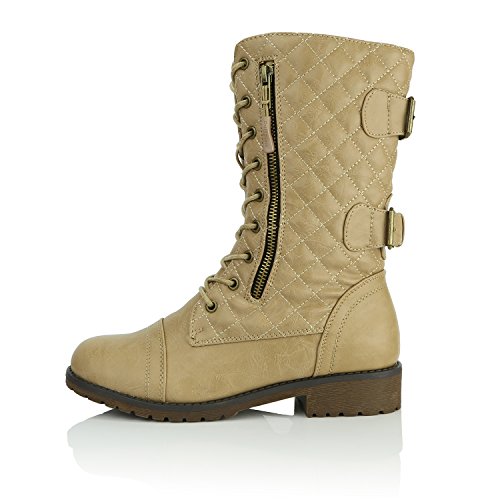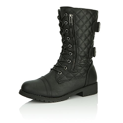 | (DailyShoes)/Women's/Boots/DIRECT FROM USA/DailyShoes Women's Military Lace Up Buckle Combat Boots Mid Knee High Exclusive Quilted Credit ... |