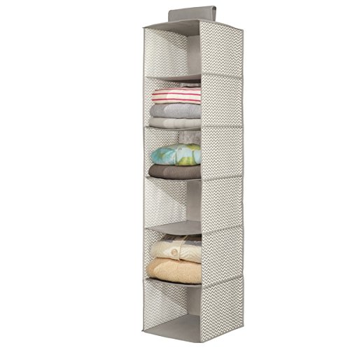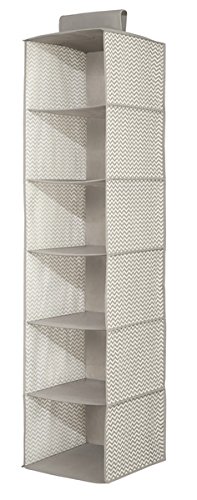 - Pack of 2 fabric closet organizers with 6 shelves each that hang over the closet rod for hassle-free installation