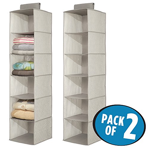 mDesign Fabric Hanging Closet Storage Organizer for Clothing, Sweaters, Shoes, Accessories - Pack of 2, 6 Shelves Each, Taupe/Natural