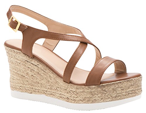Cambridge Select Women's Open Toe Crisscross Strappy Slingback Espadrille Platform Wedge Sandal