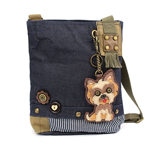 Chala Womens' Canvas Patch Crossbody Handbag "Yorkshire Terrier" - Denim