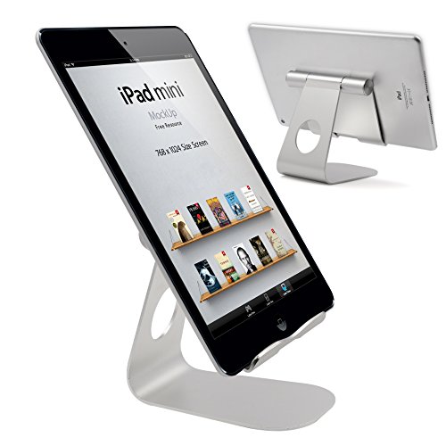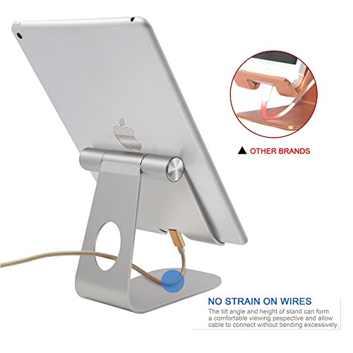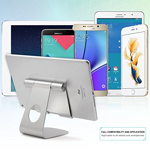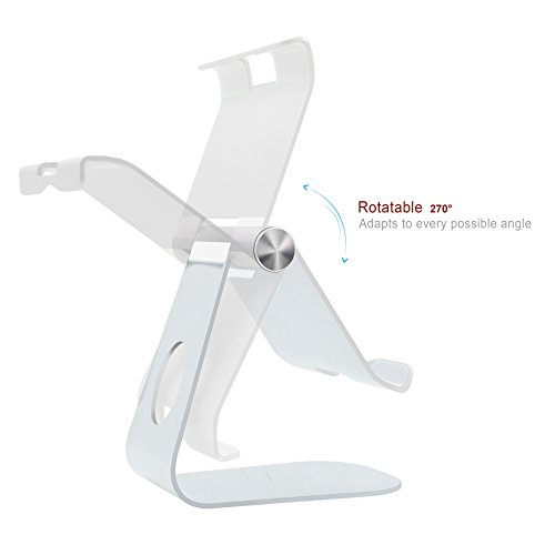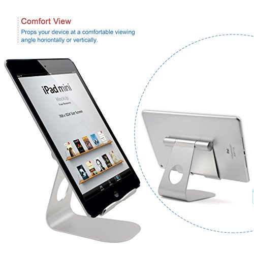 Universal Aluminum Tablet Stand, Skoloo HIGH FOOT Rotate Charge Desk Desktop Tablet and Cell Phone Display Stand Holder Dock for Nintendo Switch, iPad Air Pro mini, kindle, Nexus, Samsung Tab, Silver
